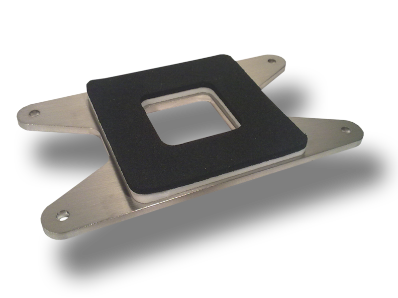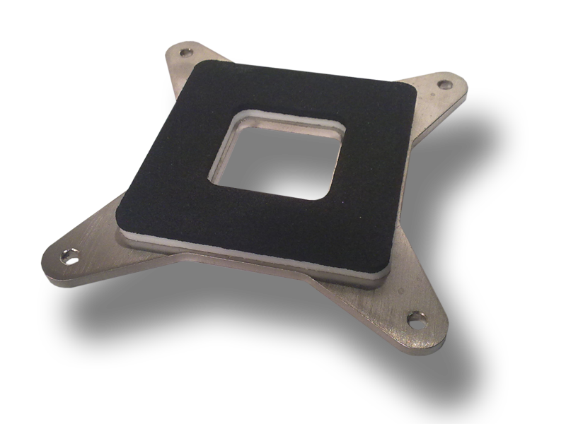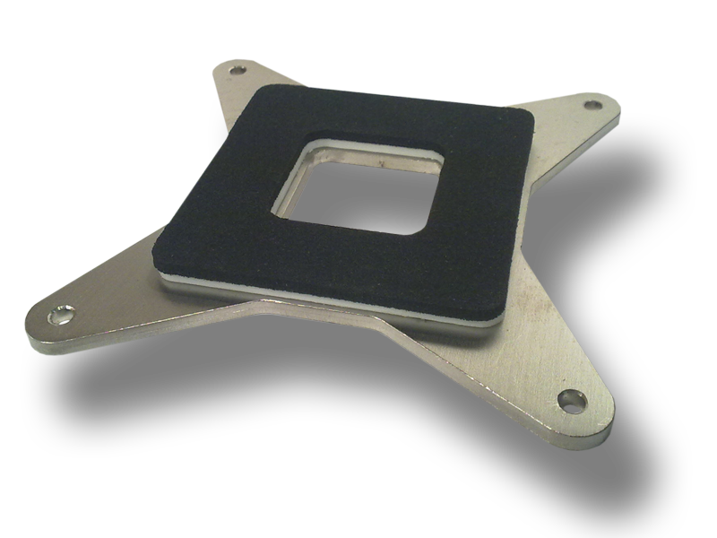 Backplate panel vyrobený z nerezového plechu o tl. 3mm pro patice LGA 1366. Izolace teflon tl. 2 mm a mikroporázní pryž. Díry pro montážní šrouby jsou o průměru 3.5 mm.