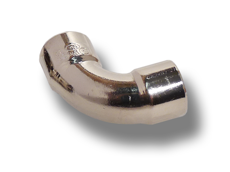 Oblouk který umožňuje prudce zahnout s hadicí o 90° (aby nedošlo k zalomení hadice). Vnitřní průmer fitinky je 10mm a hrdla mají vnější průměr 13,7mm (pro hadice o vnitřním průměru 10-13mm). Vyrobeno z mědi, která je poniklována, aby nedocházelo ke korozi.