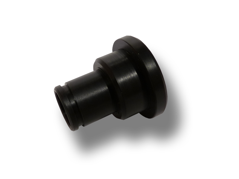 Ukončovací hrdlo s celkovou výškou 22 mm a osazením 18 mm. Z obou stran je závit G1/4” pro našroubování zátky a fitinky. Vyrobeno z kvalitního černého plastu Ertacetal.