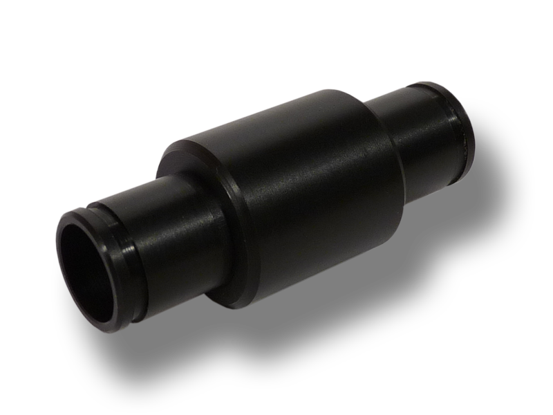 Spojka s délkou 20 mm. Z obou stran závit G1/4” pro našroubování zátky nebo fitinek které nejsou součástí balení. Vyrobeno z kvalitního černého plastu Ertacetal.