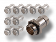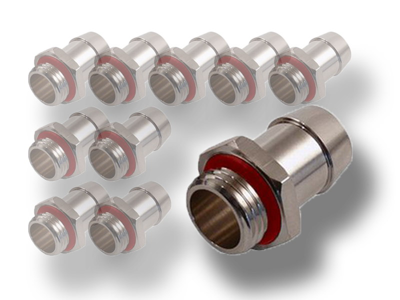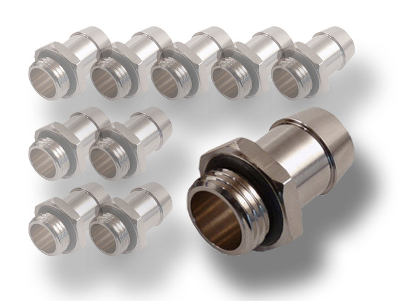 Balení deseti kusů kvalitní fitinky se závitem G1/4" a NBR těsněním. Vnitřní průměr 10mm. Krátký závit o délce 5mm má výhodu například u bloků pro GPU typu FULLCOVER, kde by delší závit bránil průtoku. Samostatná drážka pro těsnící o-kroužek zajišťuje vyšší bezpečnost. Pro hadice s vnitřním průměrem 10-13mm.